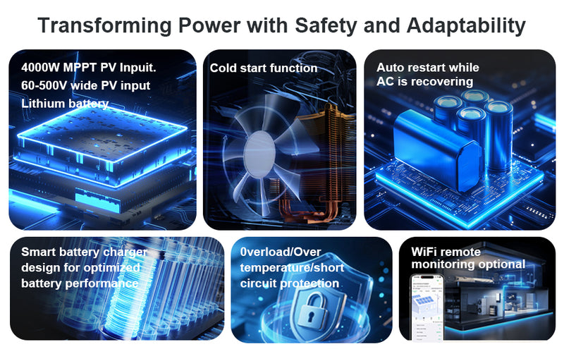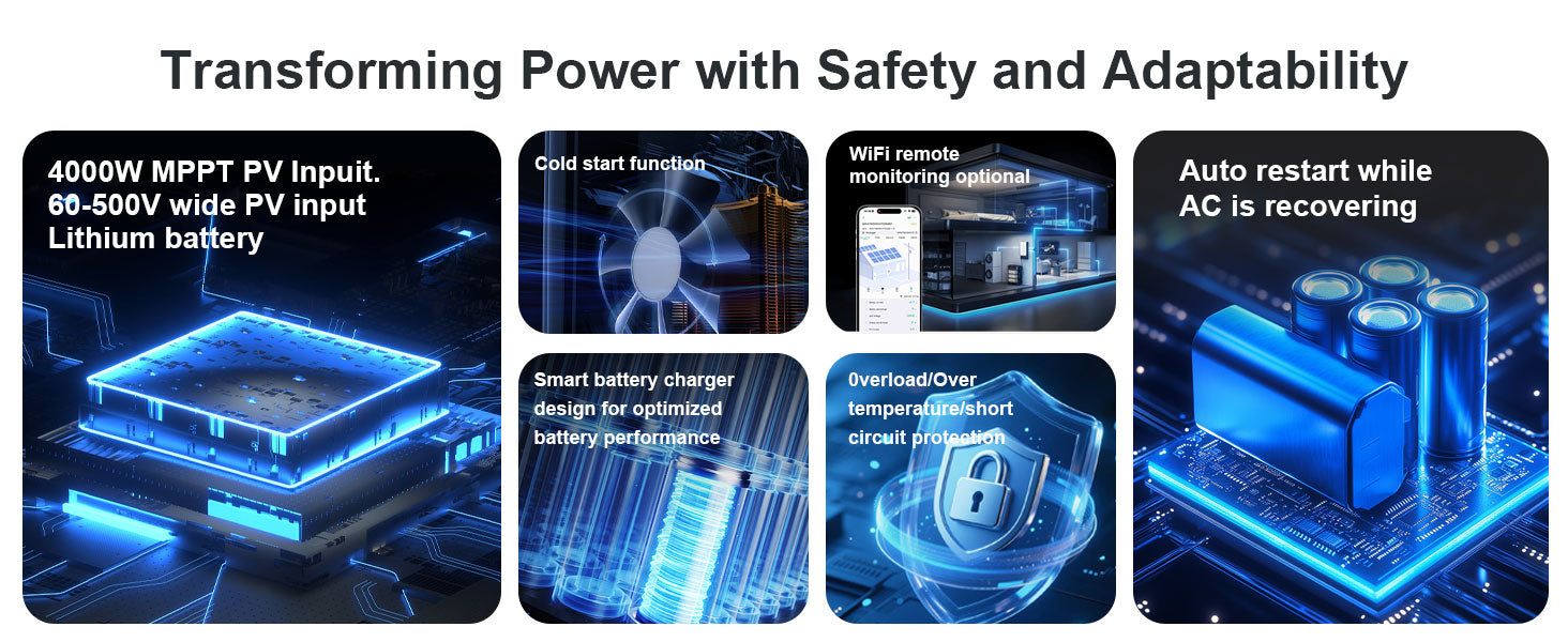 The 4000W off-grid inverter is built for versatility — perfect for homes, mobile coffee trucks, small workshops, farms, and backup systems.